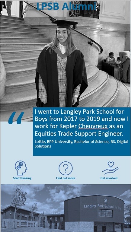 If you would like to talk to someone at Langley Park School for Boys, Mrs Danielle Hewlett-Boyle is our Careers Lead and can be contacted on dhewlett@lpsb.org.uk.